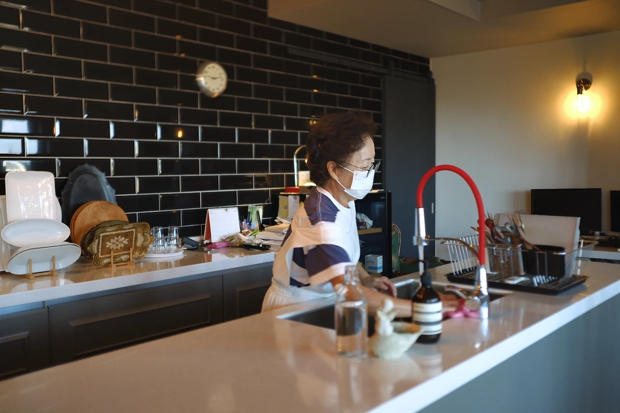 아주머니의 이야기를 들으면서 부엌 곳곳에 아주머니의 추억들이 보였다. 패션 공부한 딸이 엄마의 스타일과 요구에 맞춰 직접 제작해준 순면 앞치마, 각 나라에서 수집한 것 만같은 여러 찻잔들과 그릇들, 붉은색 컬러로 통일된 싱크대 호수와 냉장고 말고도 여러 인테리어 소품들이 여느 미술관보다 보고 배울게 많아 보였다.