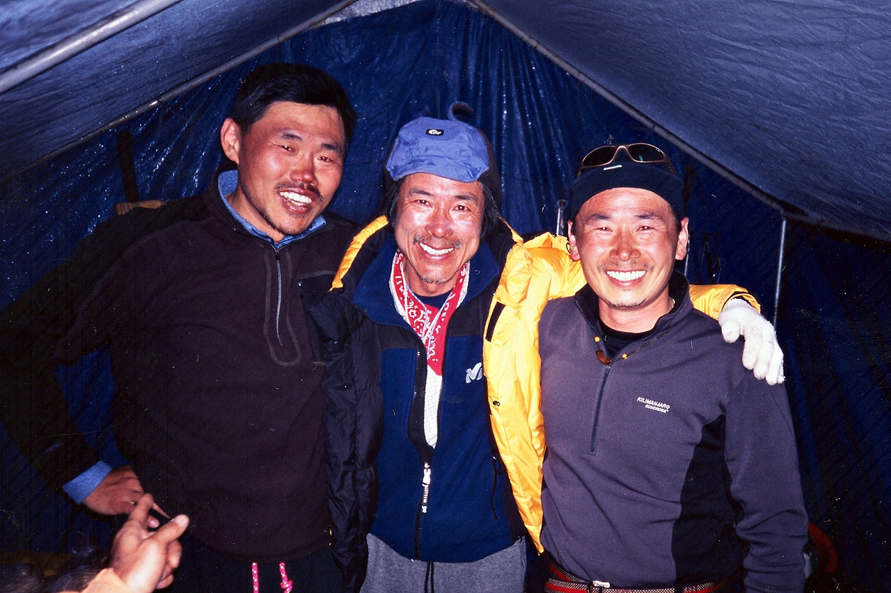 왼쪽부터 나, 조연 단장, 친구 염봉섭, 우리는 운행조가 달라서 가끔 베이스캠프에서 함께할 때 이산가족이 상봉한것처럼 즐거웠다.