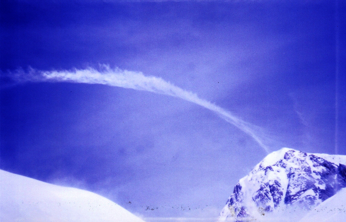 강풍이나 난기류로 정상부에 기이한 현상의 구름이 형성되었다.