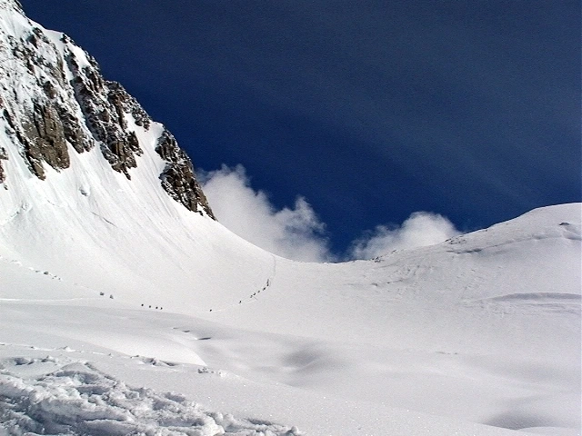 윈디코너로 하단으로 가끔 완쪽 상단에서 눈사태가 일어나기에 빠른 이동을 해야하는 구간이다
