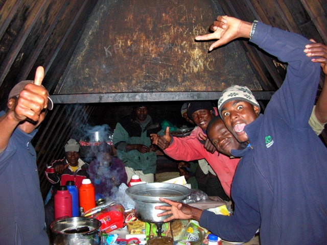 삼림이 울창했던 어제와 달리 사막구간을 거쳐 전형적인 고산지대를 만나니 아프리카 최고봉의 느낌이 물씬 느껴졌다. 점심때부터 갑자기 우박이 쏟아지기 시작했고 잠시 후 그칠 줄 알았던 우박은 오후 내내 쏟아져 내리며 순조로운 운행은 물건너 갔고 더딘 발걸음으로 오후 늦게 되어서야 목적지 호롬보대피소에 겨우 도착했다.