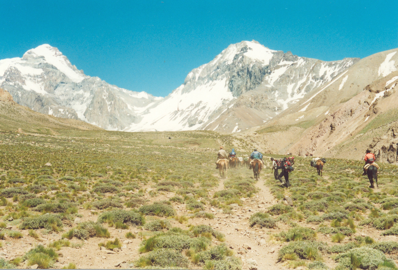 베이스캠프 도착 직전 우리 짐을 운반하는 가우초와 뮬라 무리가 우리를 지나가고 있다.