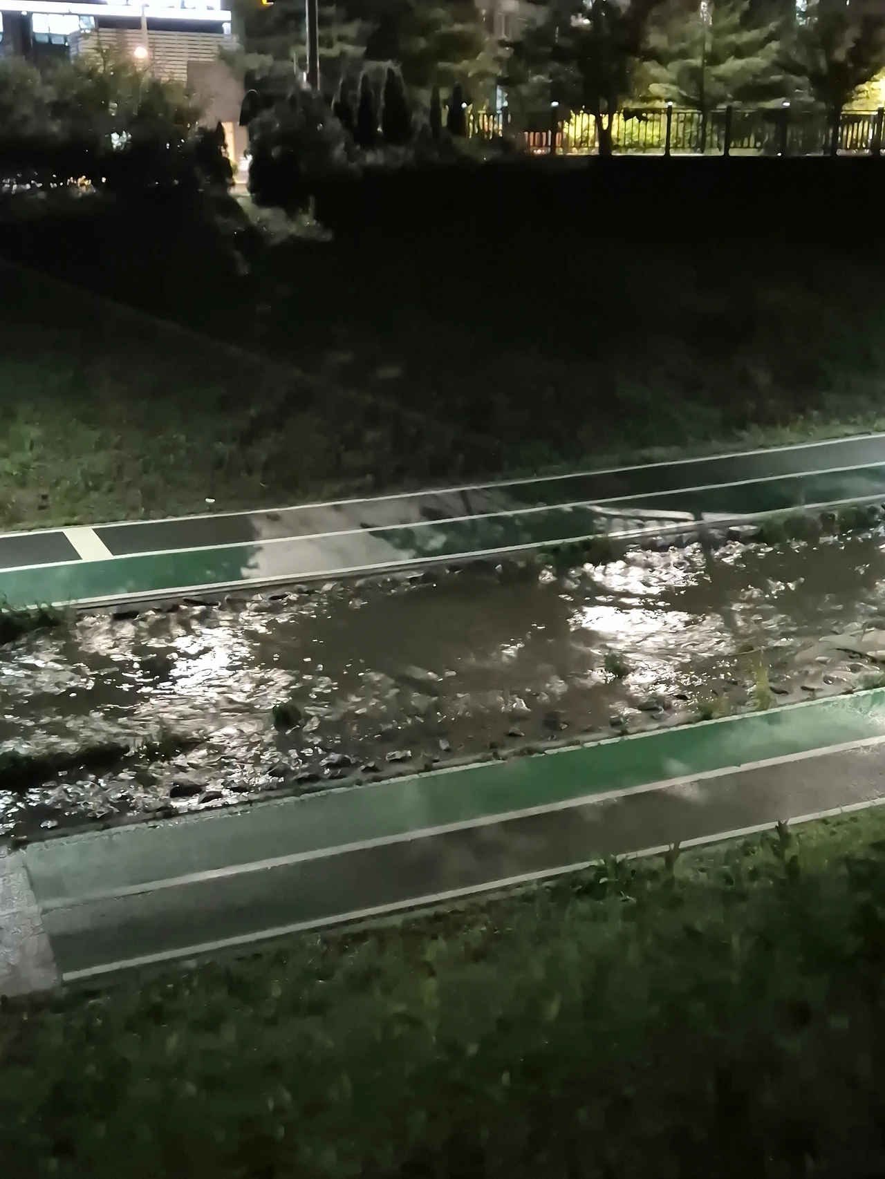산책로로 넘칠 정도로 동네 천의 수위가 높아져있었다.