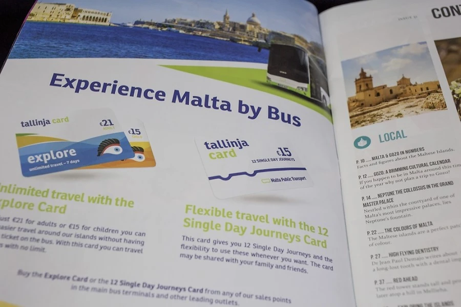 심심해서 몰타 여행 잡지를 뒤적거리니 몰타 교통카드에 대한 정보가 보인다.
