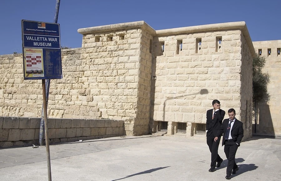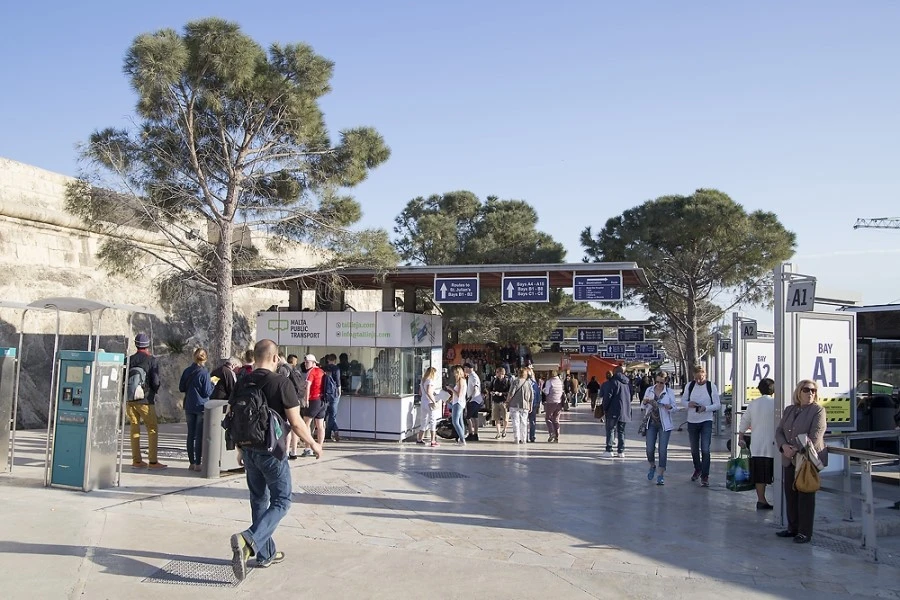 발레타 성벽 밖에 있는 버스 정류장.