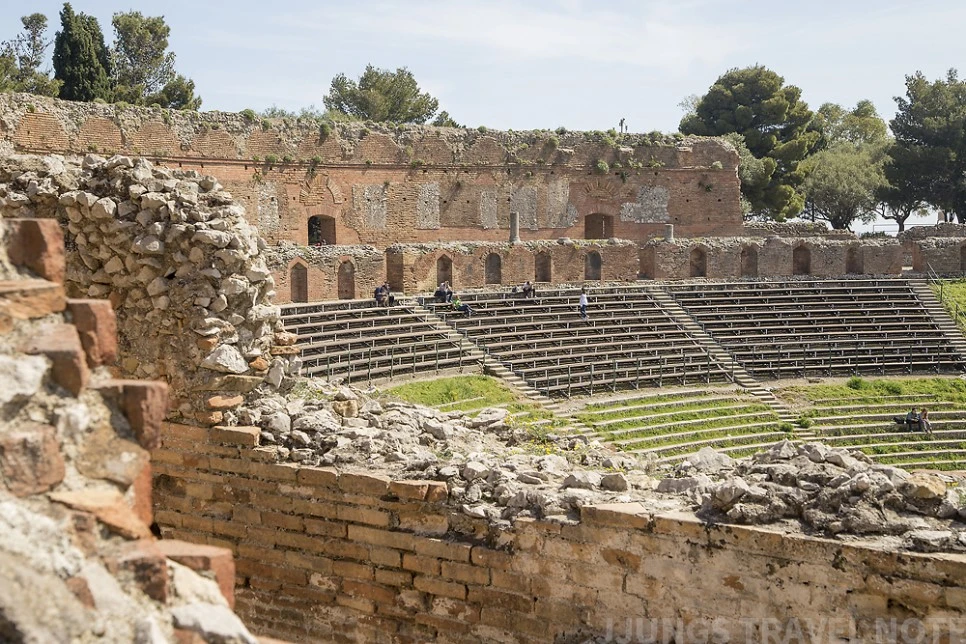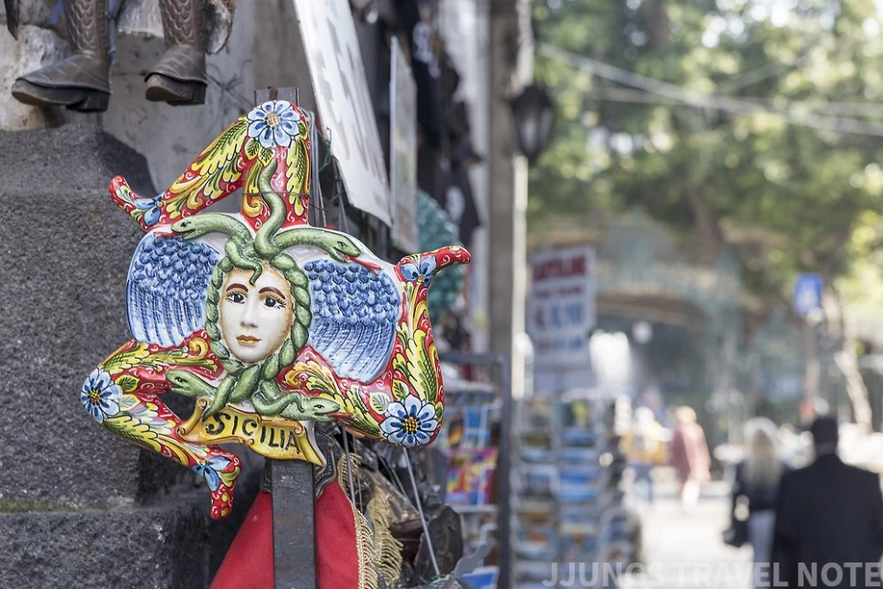 아는 사람은 알겠지만, 시칠리아는 구릉 위에 자리한 마을이 많다. 라퓨타에 로망이 있는 나는 처음 시칠리아의 갈 곳을 정할 때, 구릉 위의 마을에 집착했다. 나중에서야 뚜벅이 여행자에겐 사치란 걸 알았다. 타오르미나는 그중 관광객들이 접근하기 쉬운 편에 속했다. 반면 그만큼 상업적인 느낌을 팍팍 풍겼던 마을. 그럼에도 불구하고 하늘 꼭대기에 있는 듯한 그리스 극장의 위엄과 길거리 가판에 아무렇게나 널려있던 색색의 파스타가 기분 좋게 만들어주던 곳.