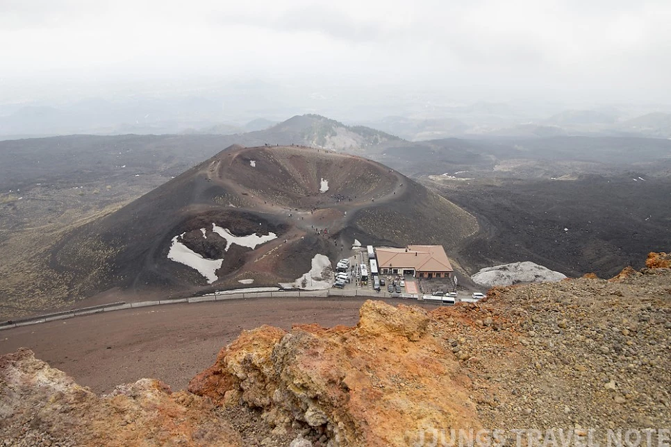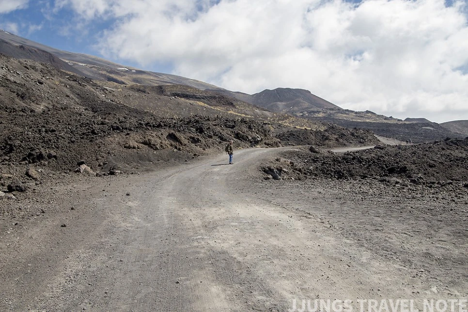 에트나 화산에 가기 전 실제 분출이 일어났다는 소식을 들었다. 겁이 나기보다는 비현실적으로 느껴졌다. 가이드 파울로가 운전하는 차 안에서 나는 프랑스, 불가리아인 부부와 젊은 이태리 커플과 함께였다. 멀리서 보이는 에트나 화산은 하얀 연기를 뿜은 평온한 모습을 띄고 있었다. 파울로는 '저건 에트나 산이 안전하다는 신호'라고 말했다. 검은색에 가까운 흙이 죽음의 땅처럼 느껴졌던 에트나 위에서 파울로의 발자국을 쫓아 내내 따라다녔던 기억. 멀리서 본 에트나 화산의 꺼져버린 분화구 역시 비현실적으로 느껴졌다.