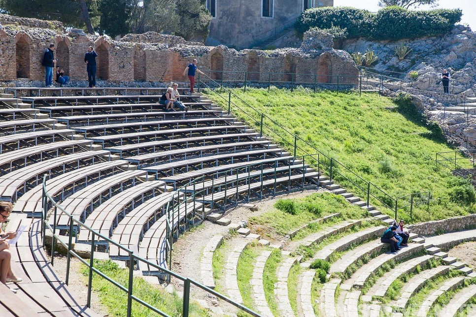 시칠리아는 많은 나라들의 지배를 거쳐간 곳이었다. 지리학적으로 우선 점령해야 할 대상이 되었기 때문이다. 기원전 3세기 무렵에는 그리스인들이 가장 먼저 시칠리아를 지배했다. 타오르미나에도 그 흔적이 남아있다. 마을 절벽 끝, 가장 전망 좋은 곳에 원형 극장을 지은 것이다. 로마 시대에는 검투사 결투를 위한 극장으로 활용되기도 했다. 지금은 콘서트, 오페라, 연극 공연 등 문화 행사가 수시로 열린다. 고대 극장을 가장 잘 활용하는 방식이 아닐까 싶다. 6월에는 타오르미나 영화제가 개최되고, 밤에 이곳에 커다란 스크린이 걸린다. 빈 필름 페스티벌이 가장 환상적이라고 생각했는데, 이젠 타오르미나다. 시간이 맞지 않아 볼 수 없었던 게 시칠리아 여행 중 큰 아쉬움으로 남는다.