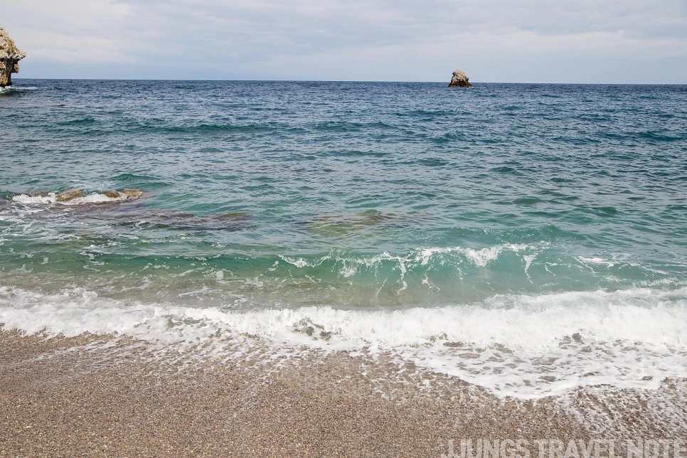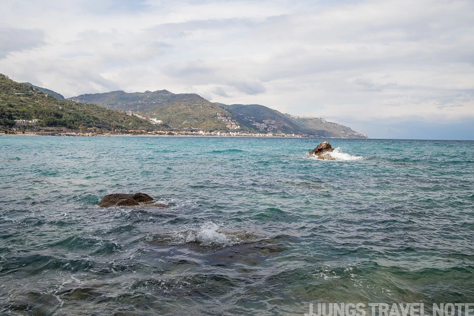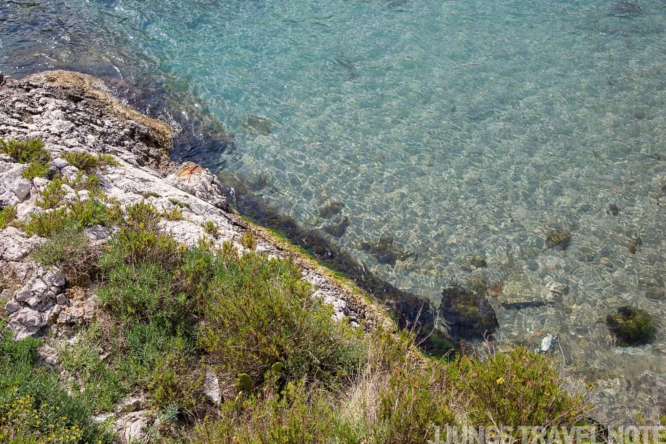 케이블카에서 내려 조금 걸었는데, 금세 바다가 눈앞에 펼쳐진다. 타오르미나에서 내려다본 풍경과는 또 달랐다. 물빛이 정말 청량해서 가슴속이 뻥 뚫리는 기분이었다.