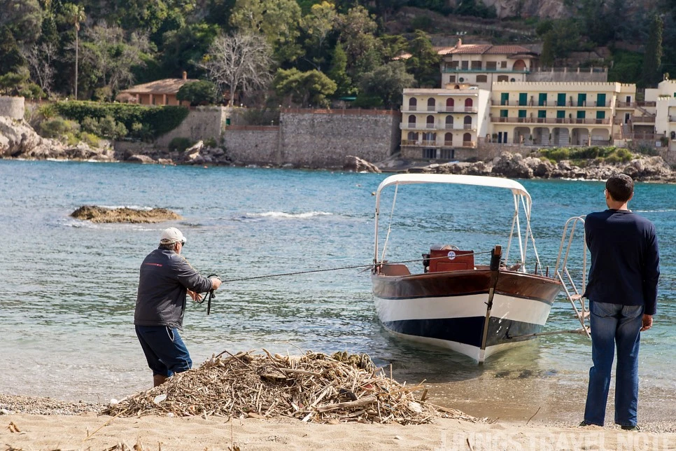 보트를 타고 이솔라벨라, 푸른 동굴(Grotta Azzurra)을 한 바퀴 둘러보는 투어를 할 수 있지만, 이 시기에는 운영을 안 하는 것 같았다. 배 주인이 힘껏 배를 끌어 정박하는 풍경이 눈에 들어왔다. 그 외에는 아무런 움직임이 없는 곳이어서 한동안 바다만 보며 앉아있었다.
