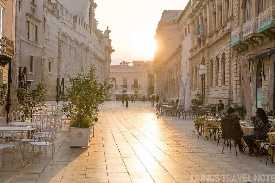 해 질 녘 두오모 광장. 강렬한 햇빛도 시라쿠사에서 내가 가장 좋아했던 것 중 하나. 해가 질 때면 도시의 모든 것이 노란빛으로 물들었다.