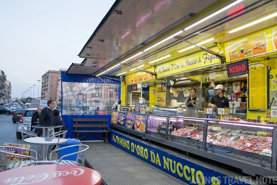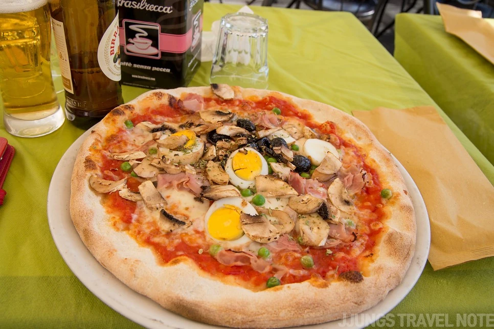 카타니아에서 간단한 아침만 먹은 터라 끼니 먼저 해결하기로 했다. 열심히 손님을 부르는 레스토랑에 한 곳에 들어가 피자를 주문했다. 삶은 계란, 완두콩, 올리브, 버섯이 토핑으로 올린 피자. 맛은 그냥 그랬다. 밖에서 심하게 호객 행위를 하는 레스토랑은 모조리 다 실패했다.