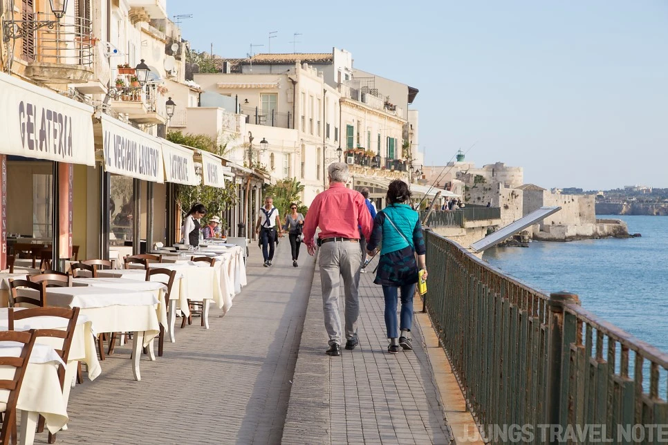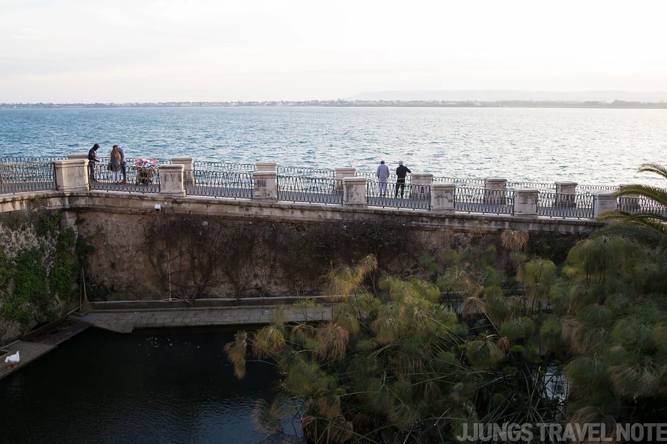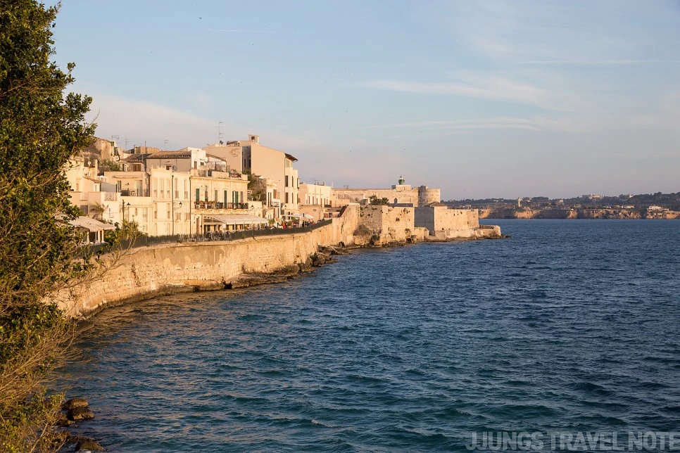 시칠리아에서 두 번째 거점으로 삼은 시라쿠사(Siracusa)에 왔다. 돌이켜보면 시칠리아에서 가장 생각나는 도시다. 특별히 화려하거나 볼거리가 많은 건 아니었지만, 마냥 사랑스러운 곳이었다. 해가 떨어지는 바다에 앉아서 그냥 바라보고만 있어도 좋았던 곳. 카타니아에서는 다소 쓸쓸했는데, 여기서 그런 기분을 날려버릴 수 있었다.