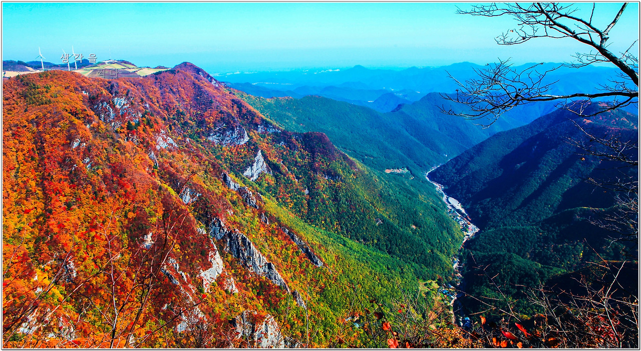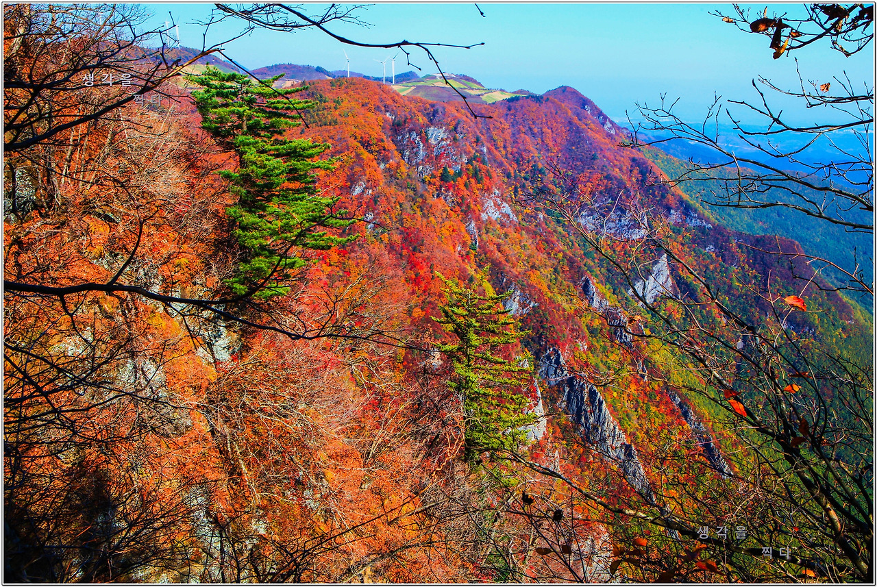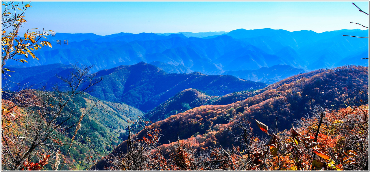 그나마 잎이 진 상태라서 가지사이로 보이는 반대쪽 환선봉 능선과 동쪽으로 펼쳐진 첩첩 산능선을 조망할 수 있다는것이 위안이었다.