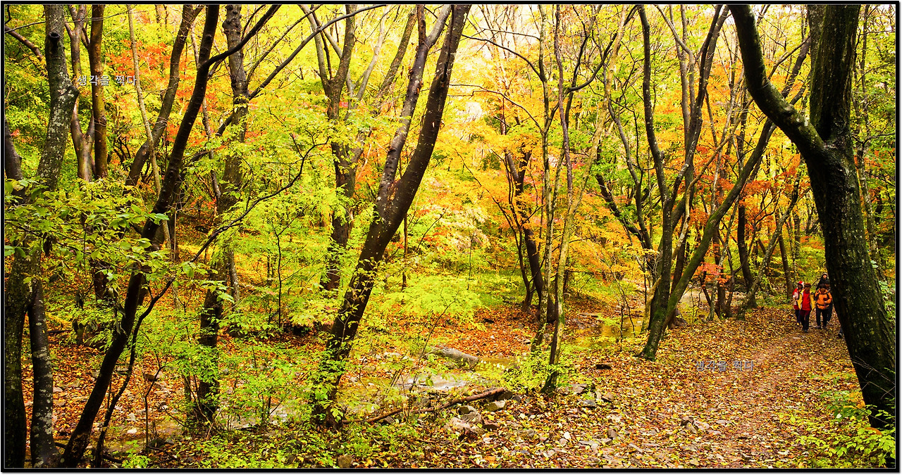 비온 뒤라서 형형색색의 단풍은 더욱 선명했고 다른 해에 비해서 월등히 고운 단풍을 최적기에 감상할 수 있었다는데 위안을 삼고 산행을 마쳤다.