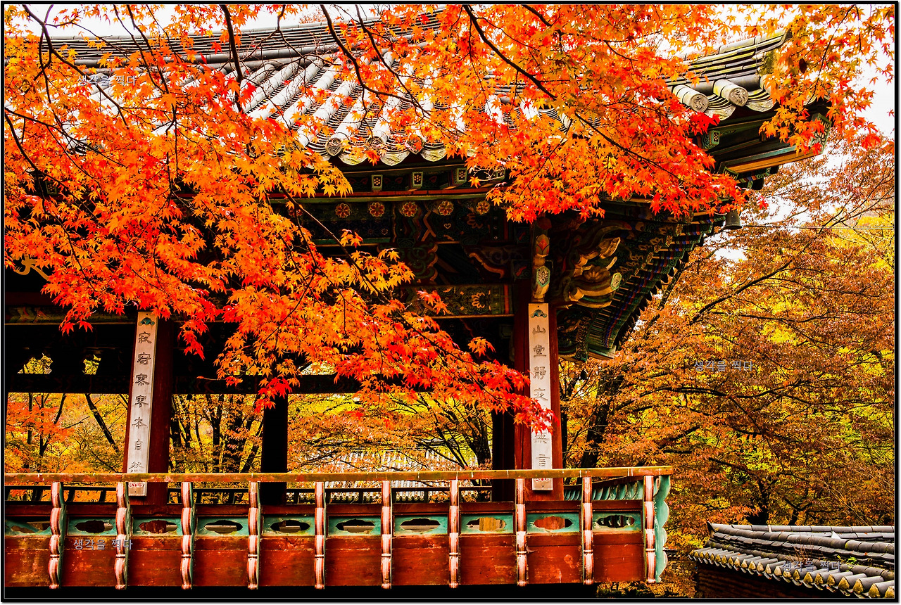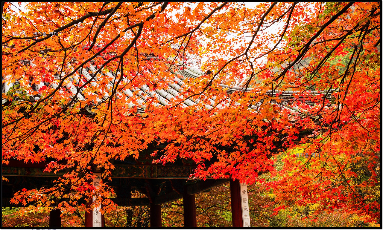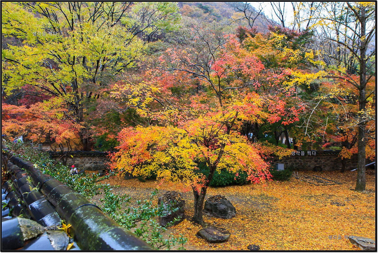 나도 감탄사를 연발하지 않을 수 없는 만추의 비에 젖은 산사의 단풍 풍경 삼매경에 잠시 빠져본다.