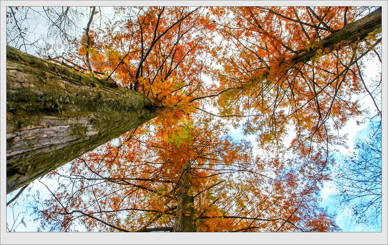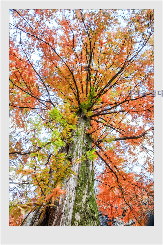 대부분의 단풍이 이미 지고 없는 늦가을인데도 메타세퀘이아는 이제야 한창이다.