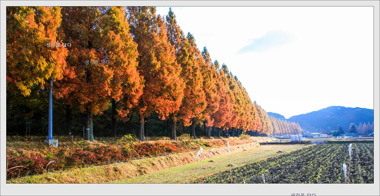 이른아침 잘 익은 메타세퀘아길을 달리는 기분이 마치 다른 세상에라도 온 듯 했다.