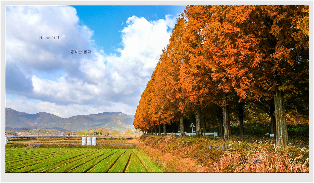 담양처럼 차량을 통제하지 않아서 마음 놓고 걸을 수는 없지만 풍경 만큼은 전혀 손색이 없었다.