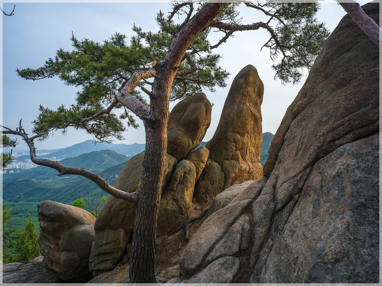키작은 분재형 소나무들이 그 기암괴석에 뿌리내리고 살아가는 아기자기한 능선이다.
