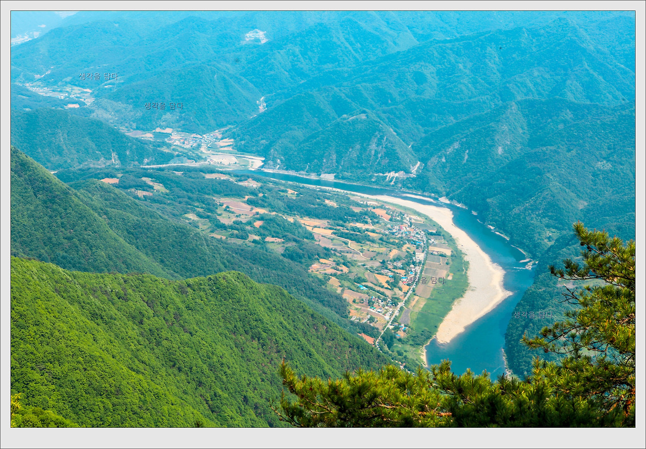 굽이굽이 아름답게 굽이쳐 흐르는 동강의 모습이 마치 정선의 백운산에서 본 풍경과 닮았다.