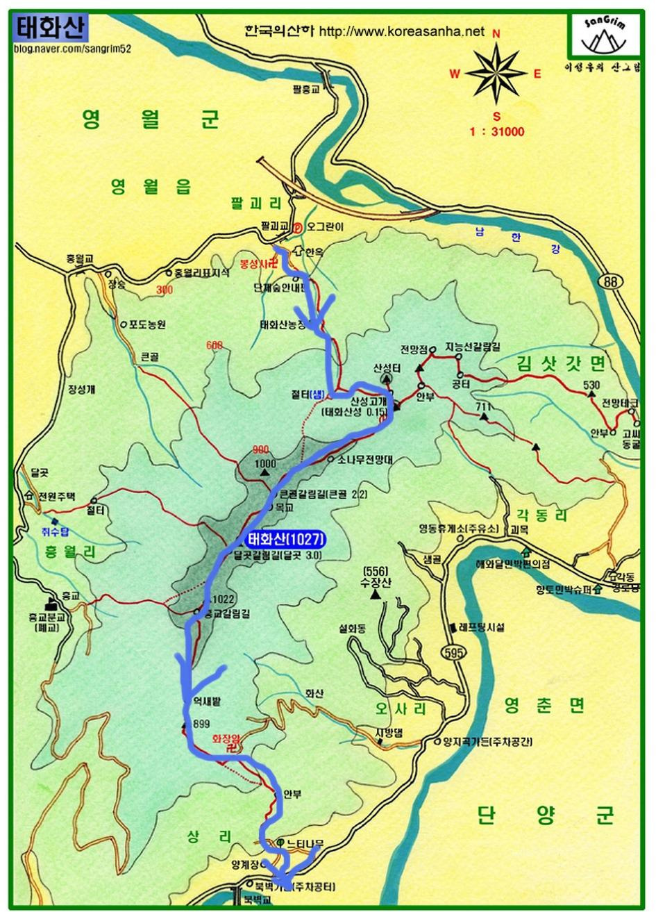그 태화산을 읽기 위해 홍월리 큰골에서 산행을 시작했다.