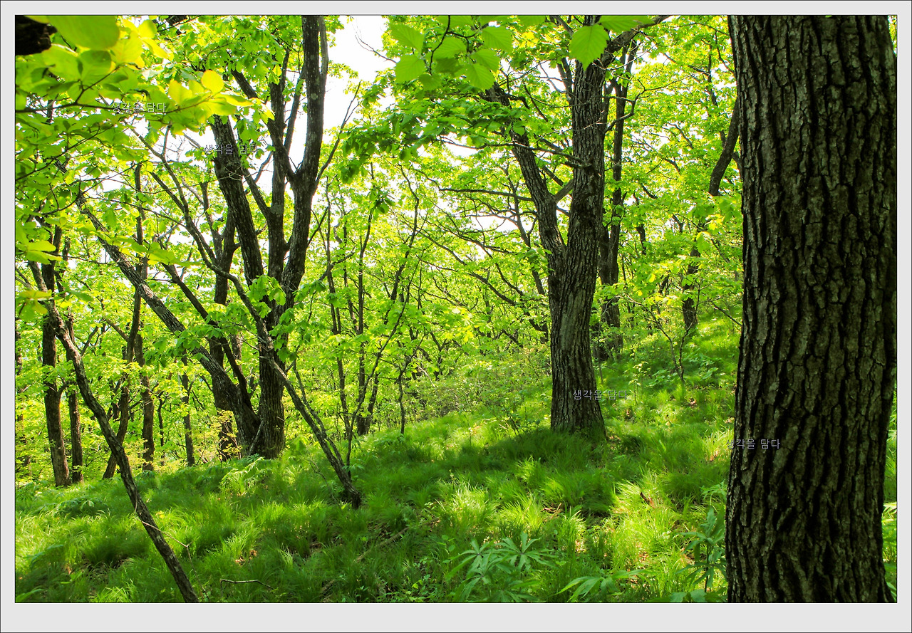 숲은 대부분 떡갈나무가 주종을 이루고 철쭉과 기타 이름모를 잡목으로 이루어져 있었다.