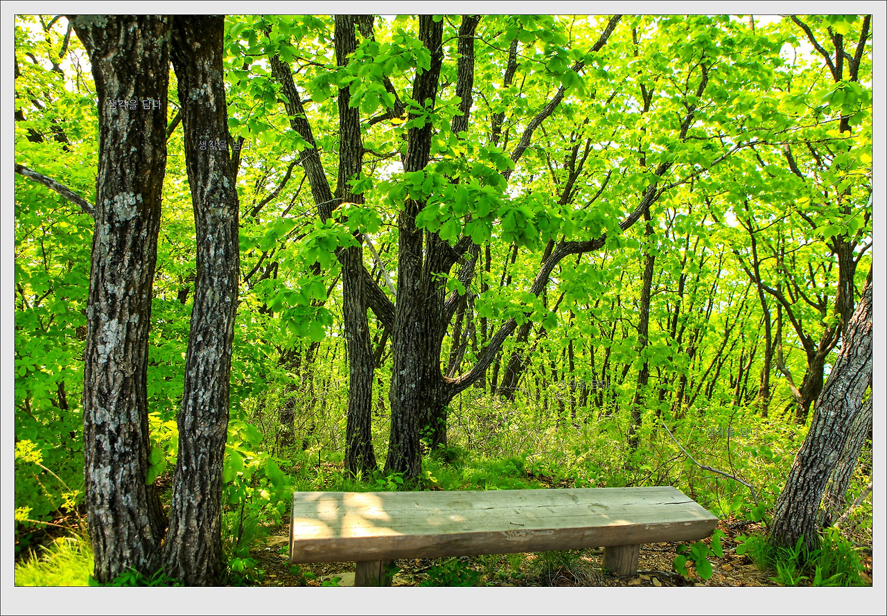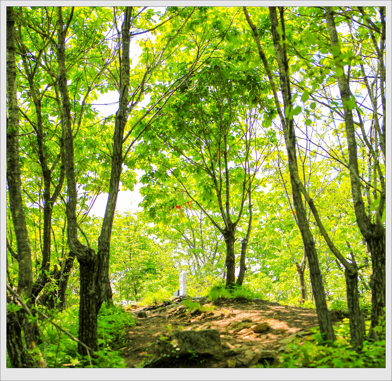 그렇게 연두빛 물감이 분무되는 듯한 숲길을 호젓하게 걷다보니 어느새 정상이 눈앞에 있다.