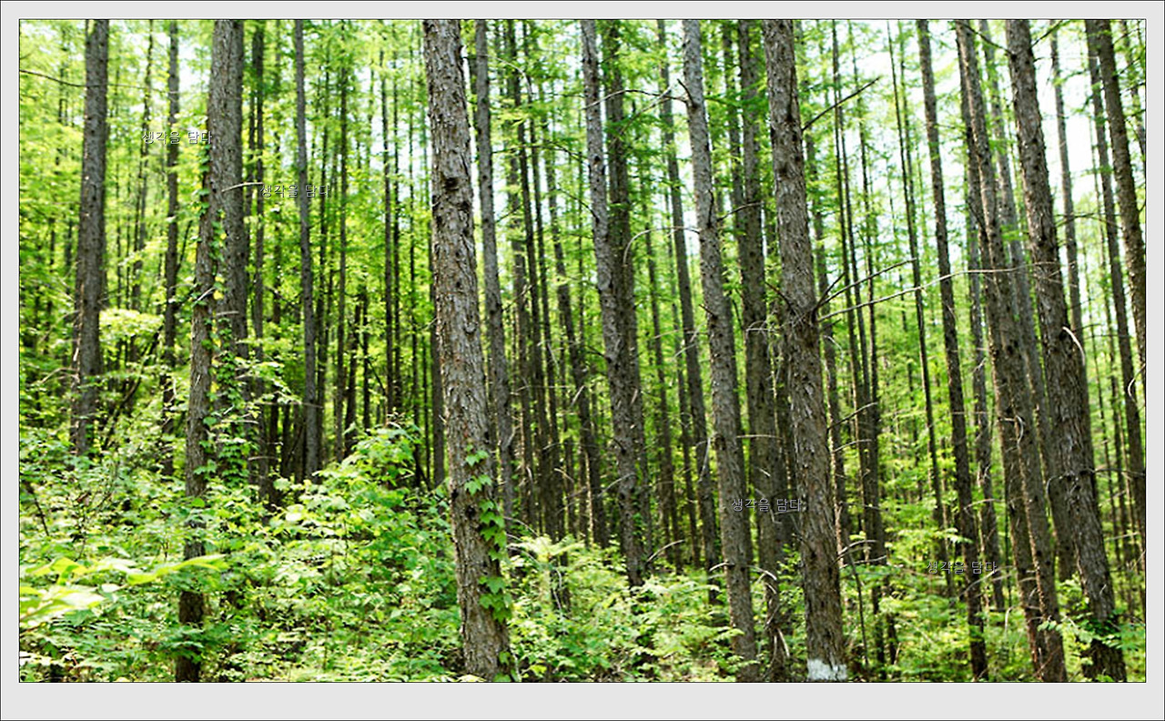 그리고 숲 아래엔 부드러운 솜털같은 잡풀이 녹색 양탄자처럼 깔려있어 더욱 신비한 분위기를 자아내고 있었다.