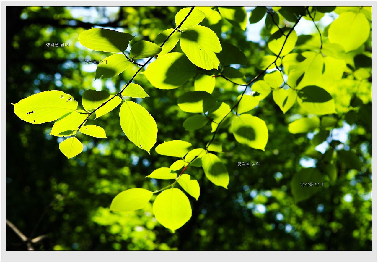햇볕에 투영된 연두빛 잎이 꽃보다 더 아름답다.