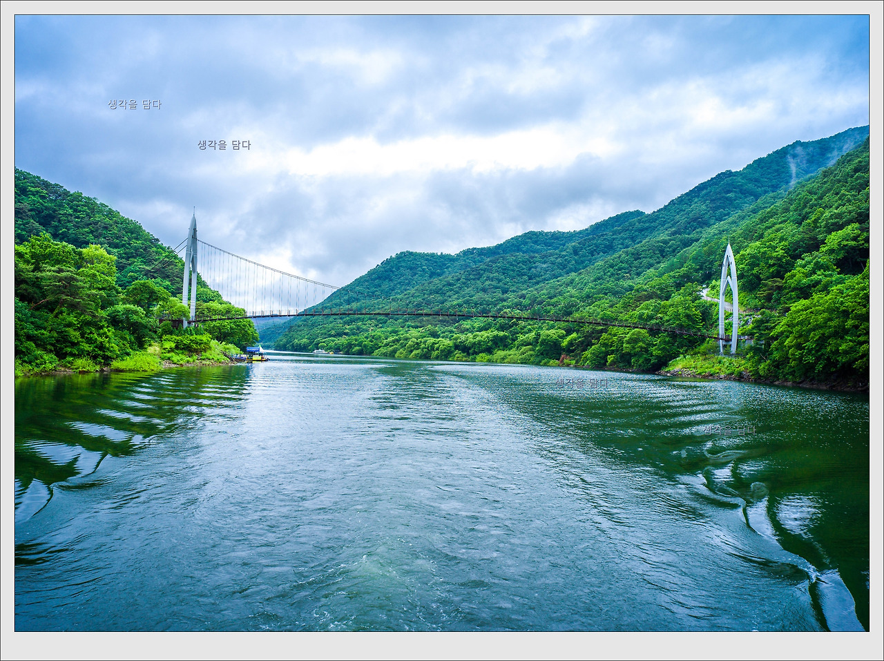 그래서 우리는 1코스를 통해 연하협 구름다리까지(약2km쯤)걷고 거기에서 다시 산막이 마을까지 유람선으로 이동한 후 산막이옛길을 걸어서 주차장으로 회귀하기로 계획을 세웁니다.