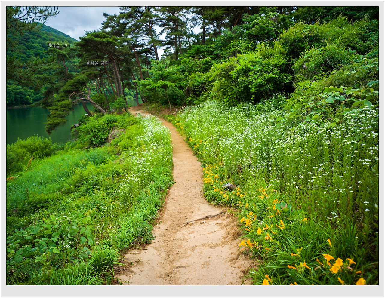 청자색 물빛과 나란히 나 있는 황톳길이 아름답기까지 한 길이지요.