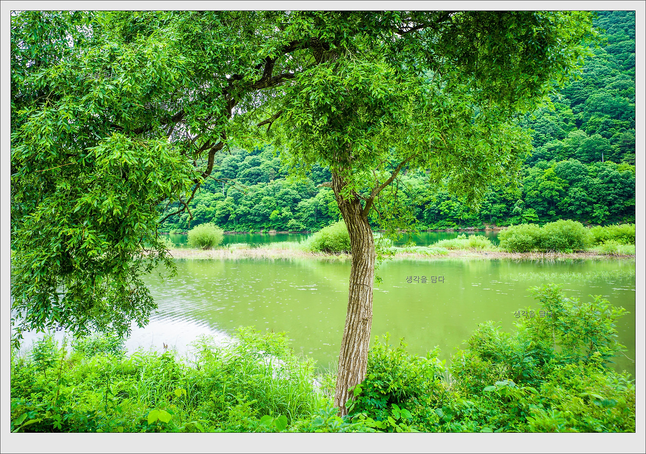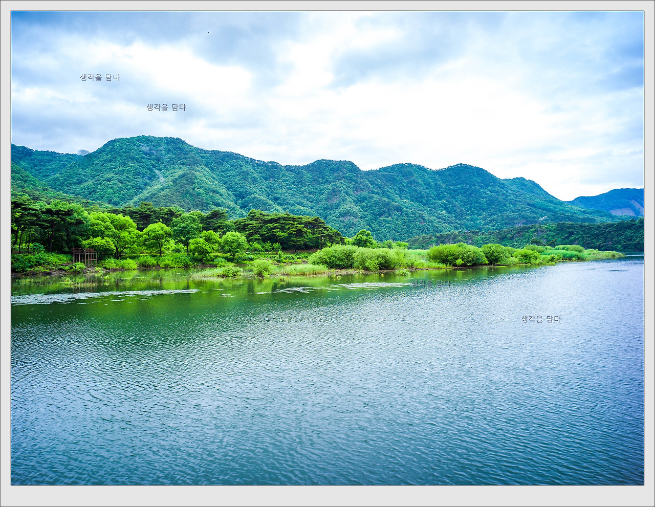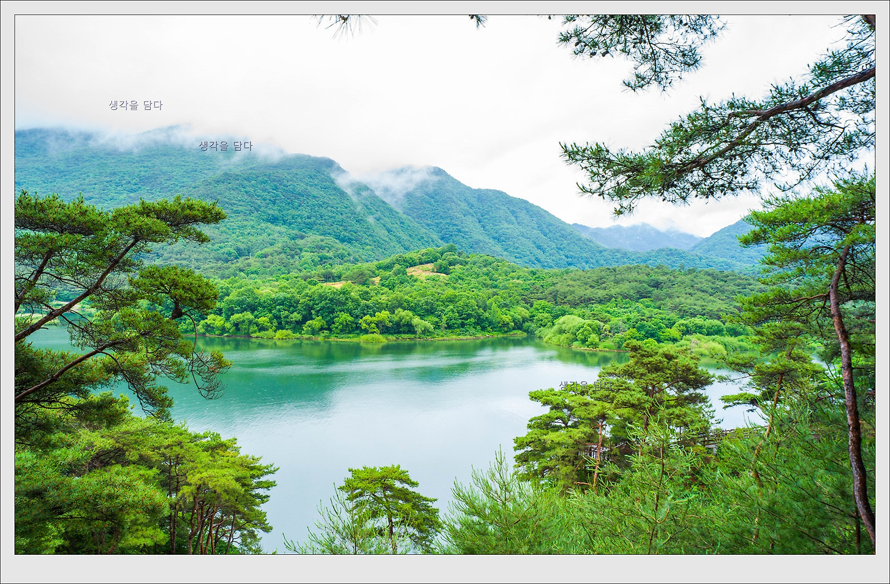 비 온 뒤의 호수 풍경입니다.