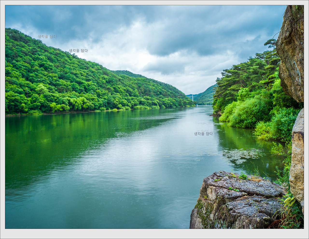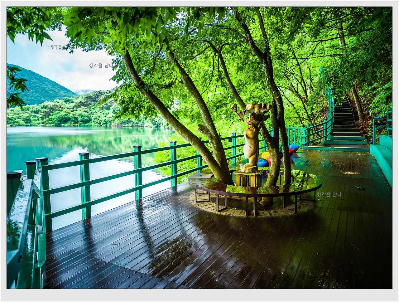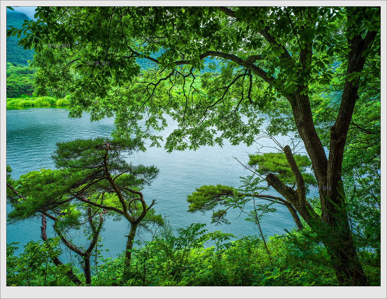 비 온 뒤의 호수 풍경입니다.