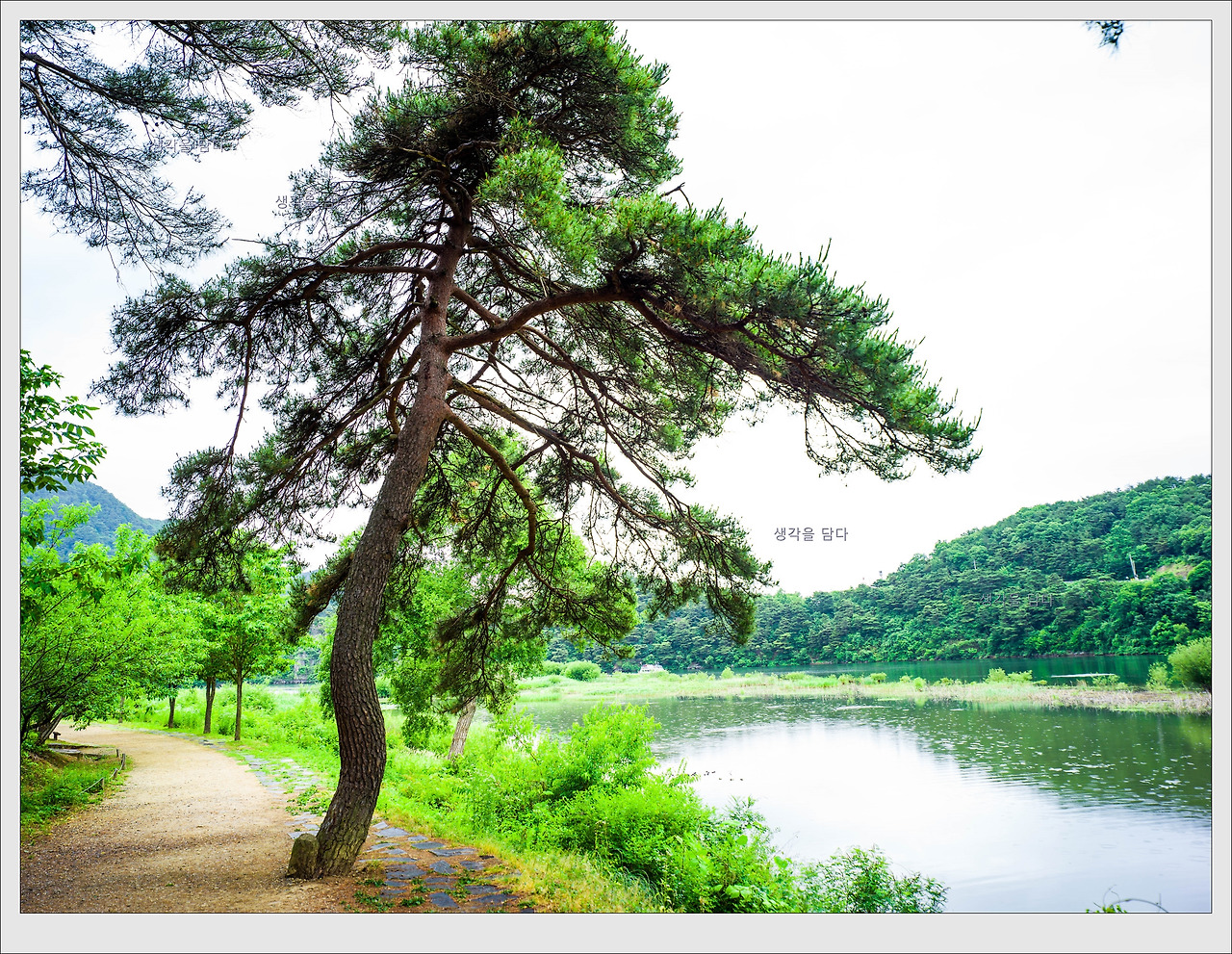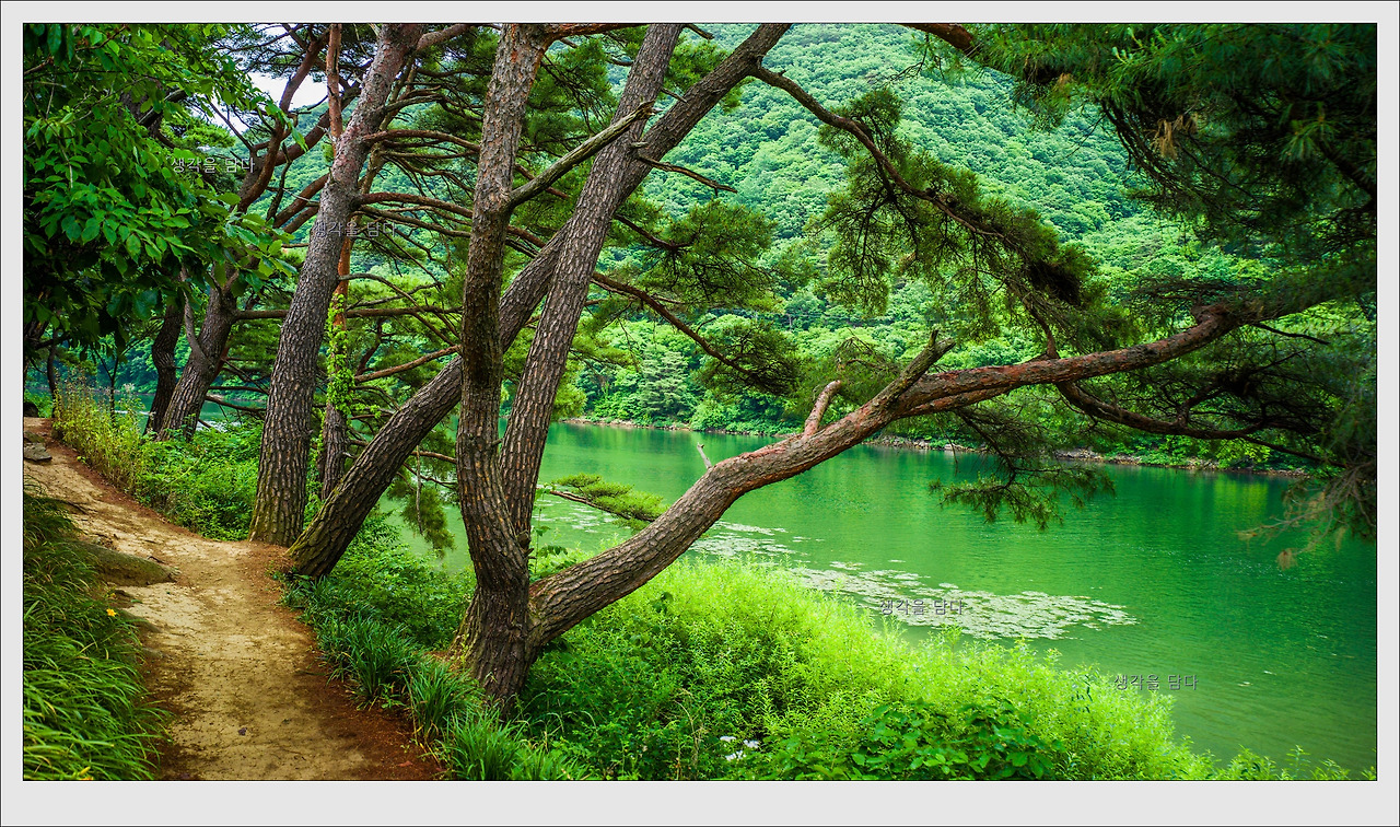 물가에는 우리에게 익숙한 버드나무가 아니라 소나무가 튼실하게 자라는 모습이 색다른 운치를 자아내고 있습니다.