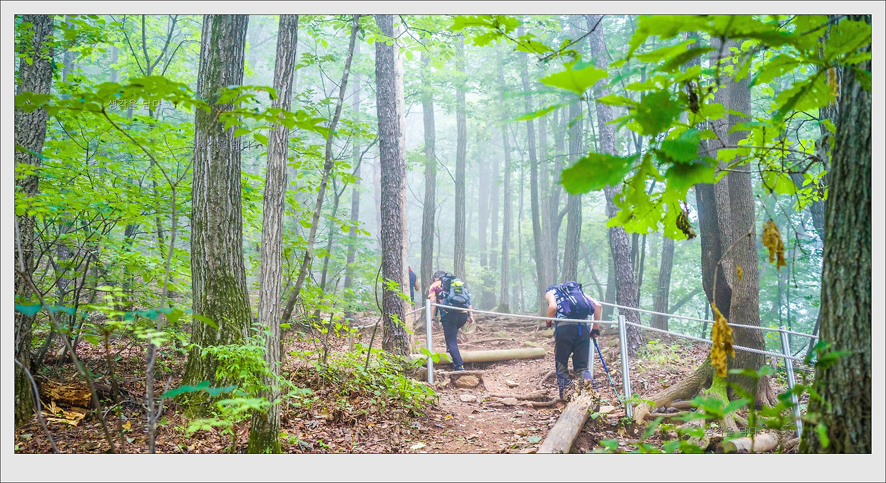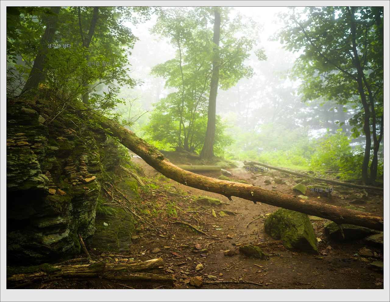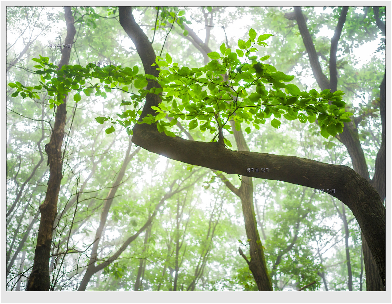 잠깐의 휴식을 끝내고 조금 더 오르자 숲 안개가 자욱하다.