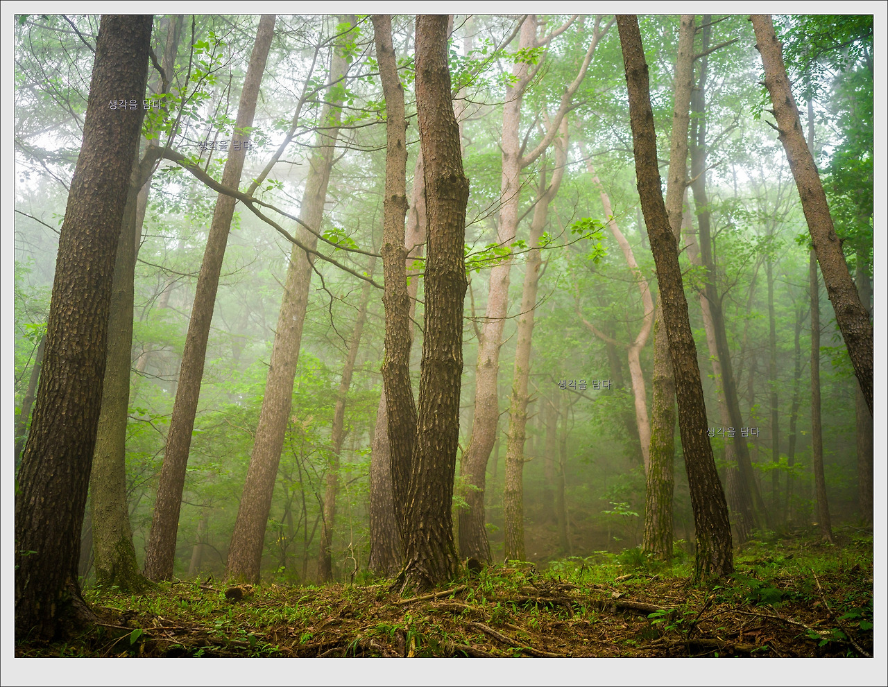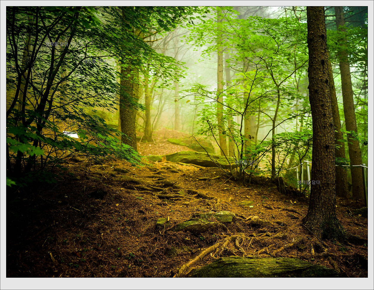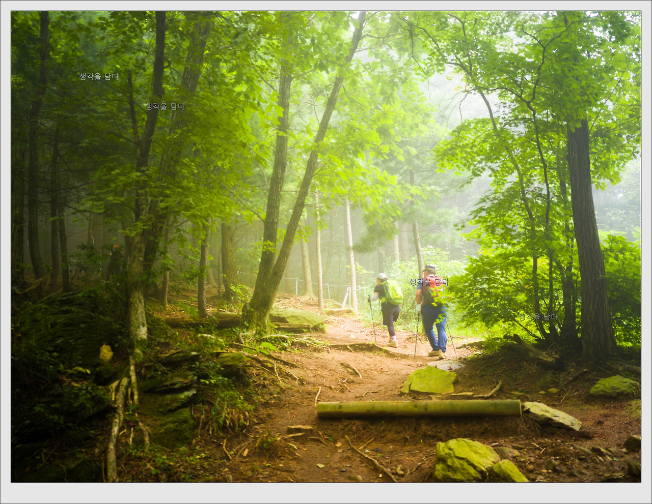 잠깐의 휴식을 끝내고 조금 더 오르자 숲 안개가 자욱하다.