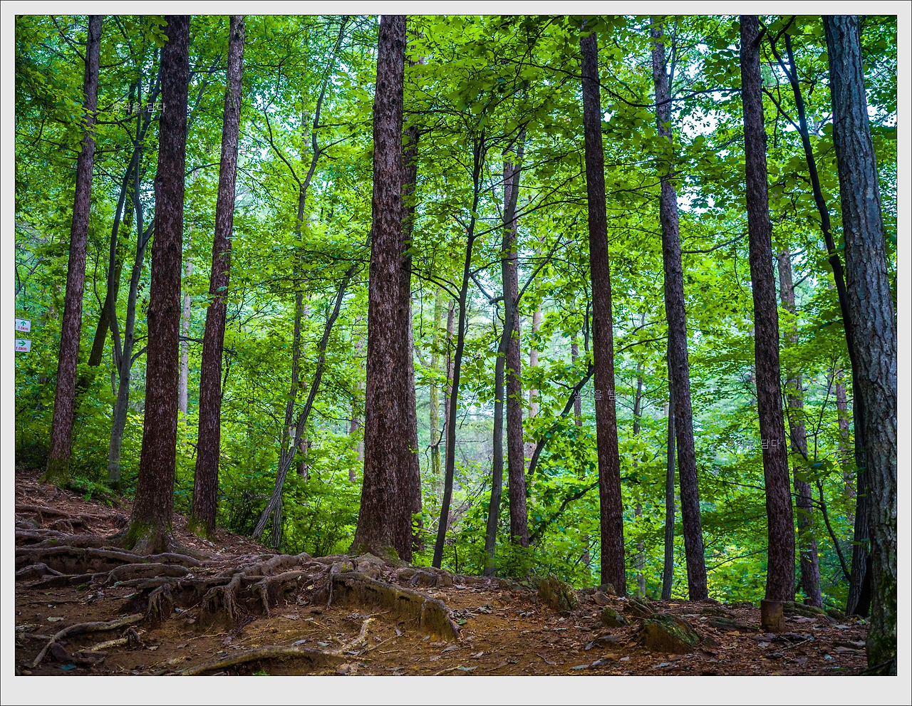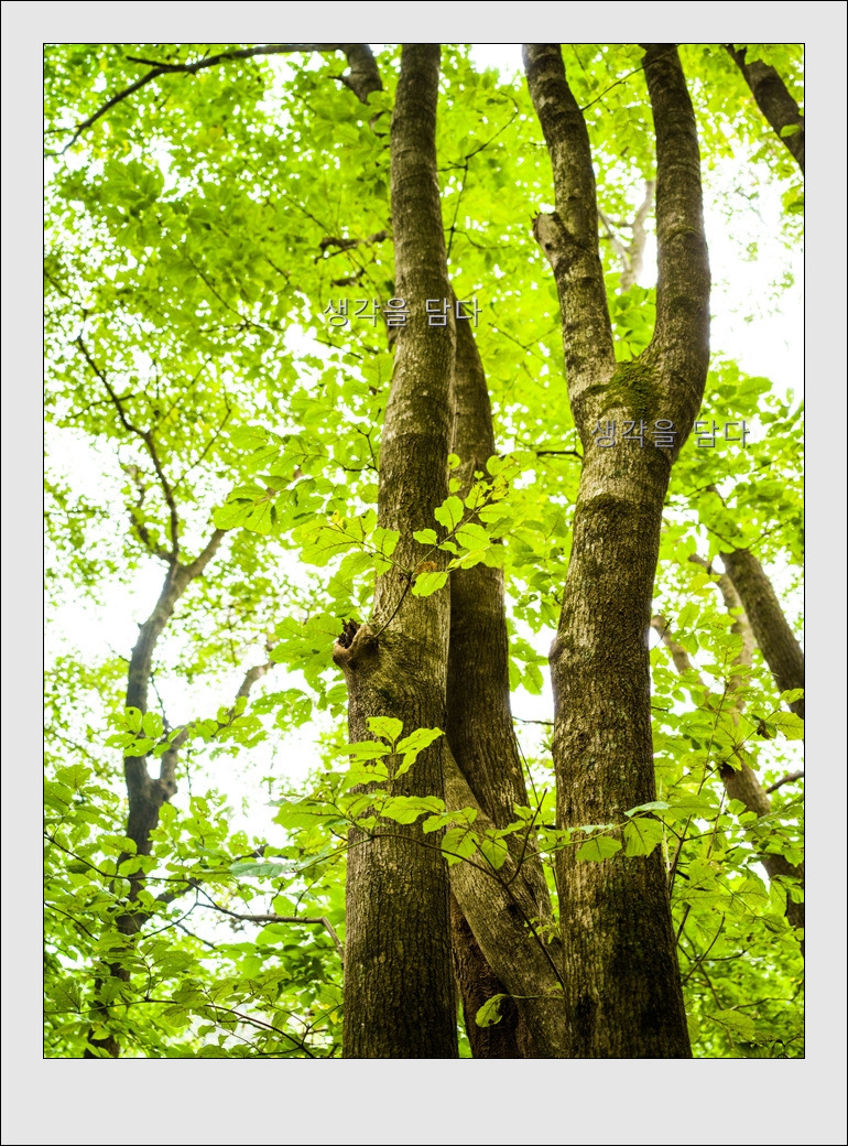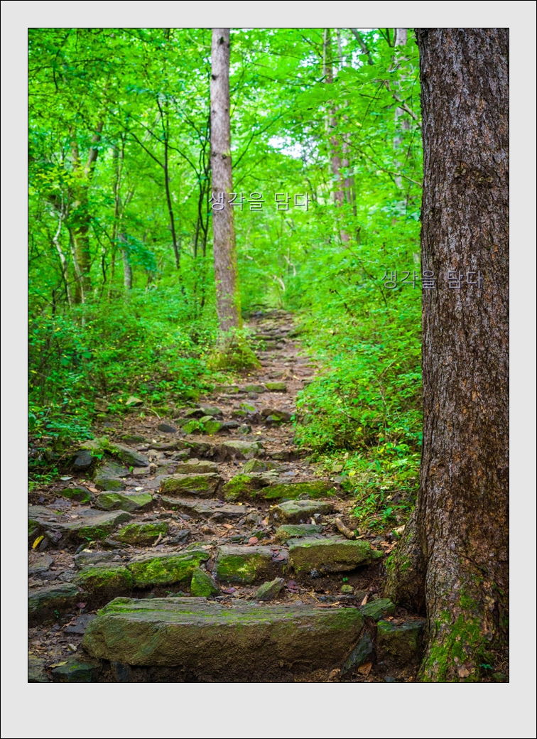 그리고 본격적인 산길에 들어서면 쭉쭉 뻗은 잣나무 숲이 잡목 숲으로 바뀌어 간다.