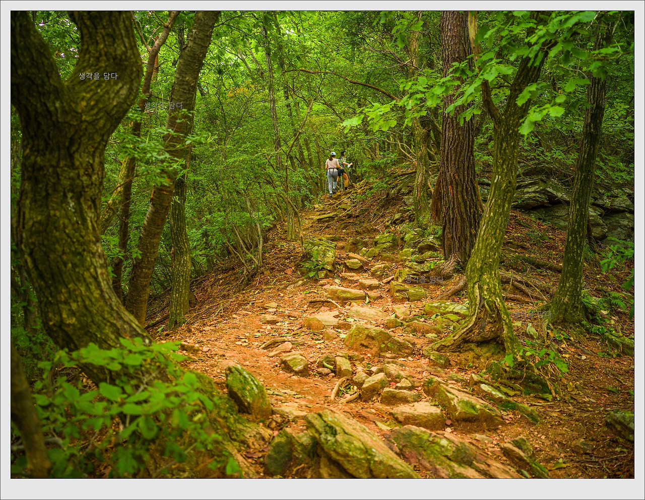 그렇게 다양한 나무들과 함께하는 사이 길은 이제 너덜길로 바뀌었다.