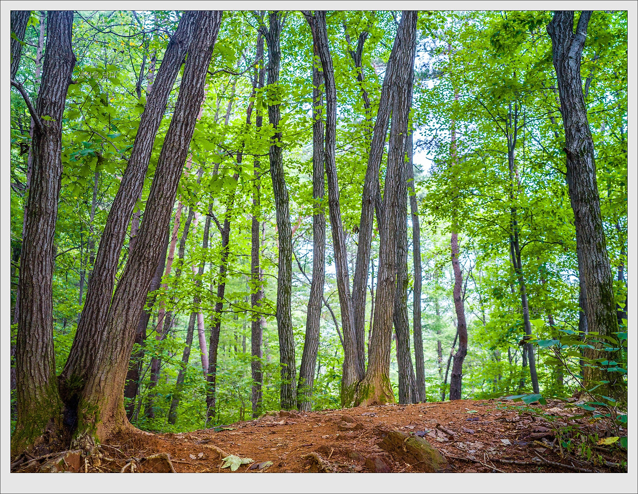 능선길에 올라서자 숲은 이제 완전히 잡목 숲으로 바뀌었다.