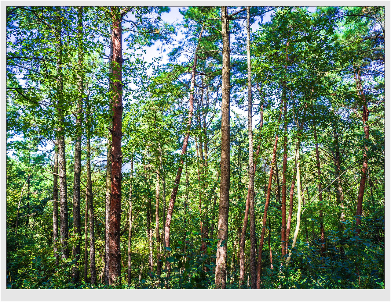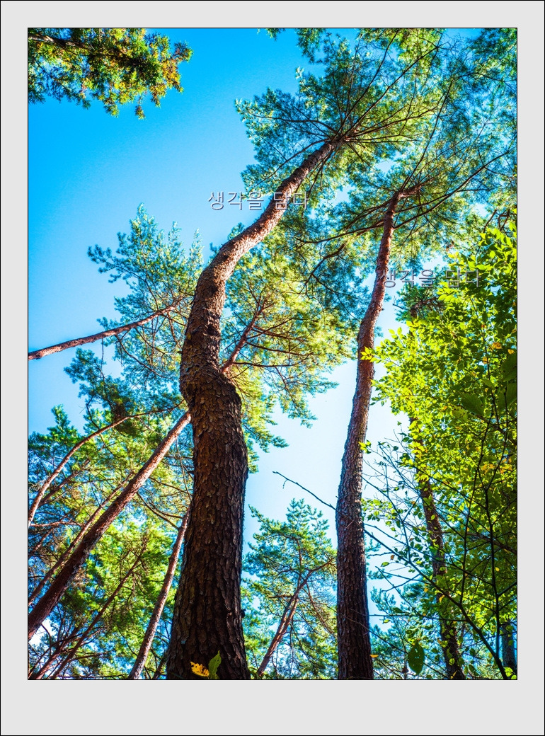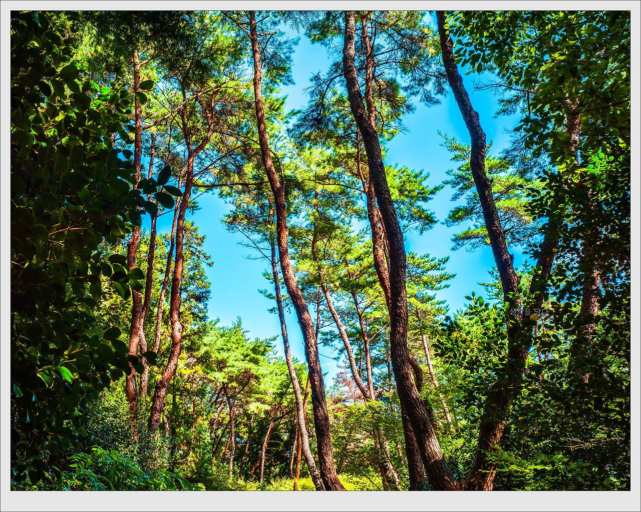 자연스럽게 구부러지며 곡선으로 자란 소나무 숲이 정겹다.