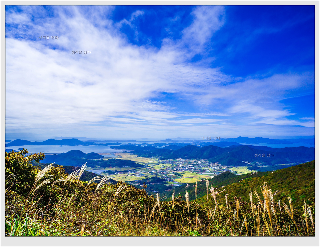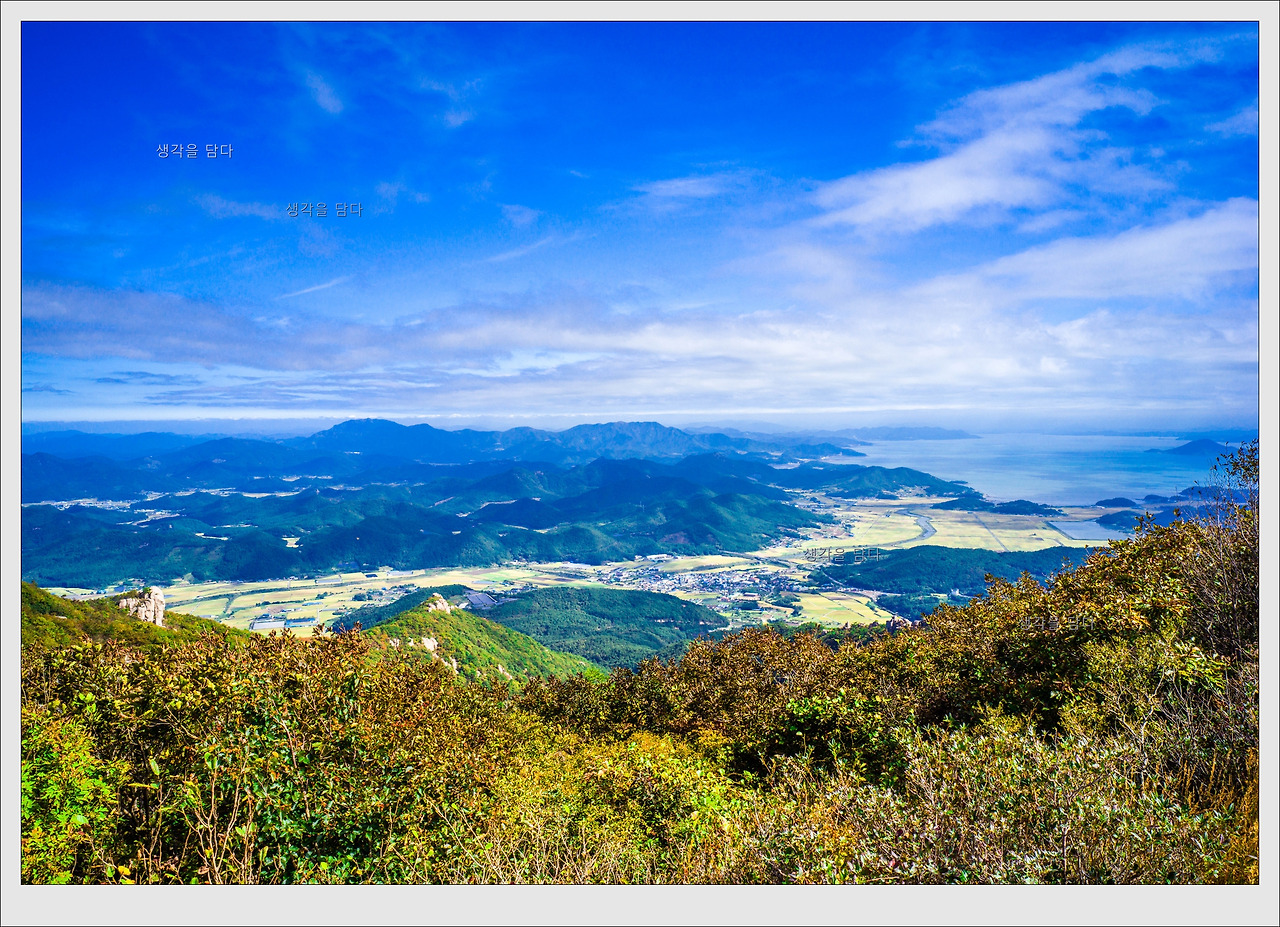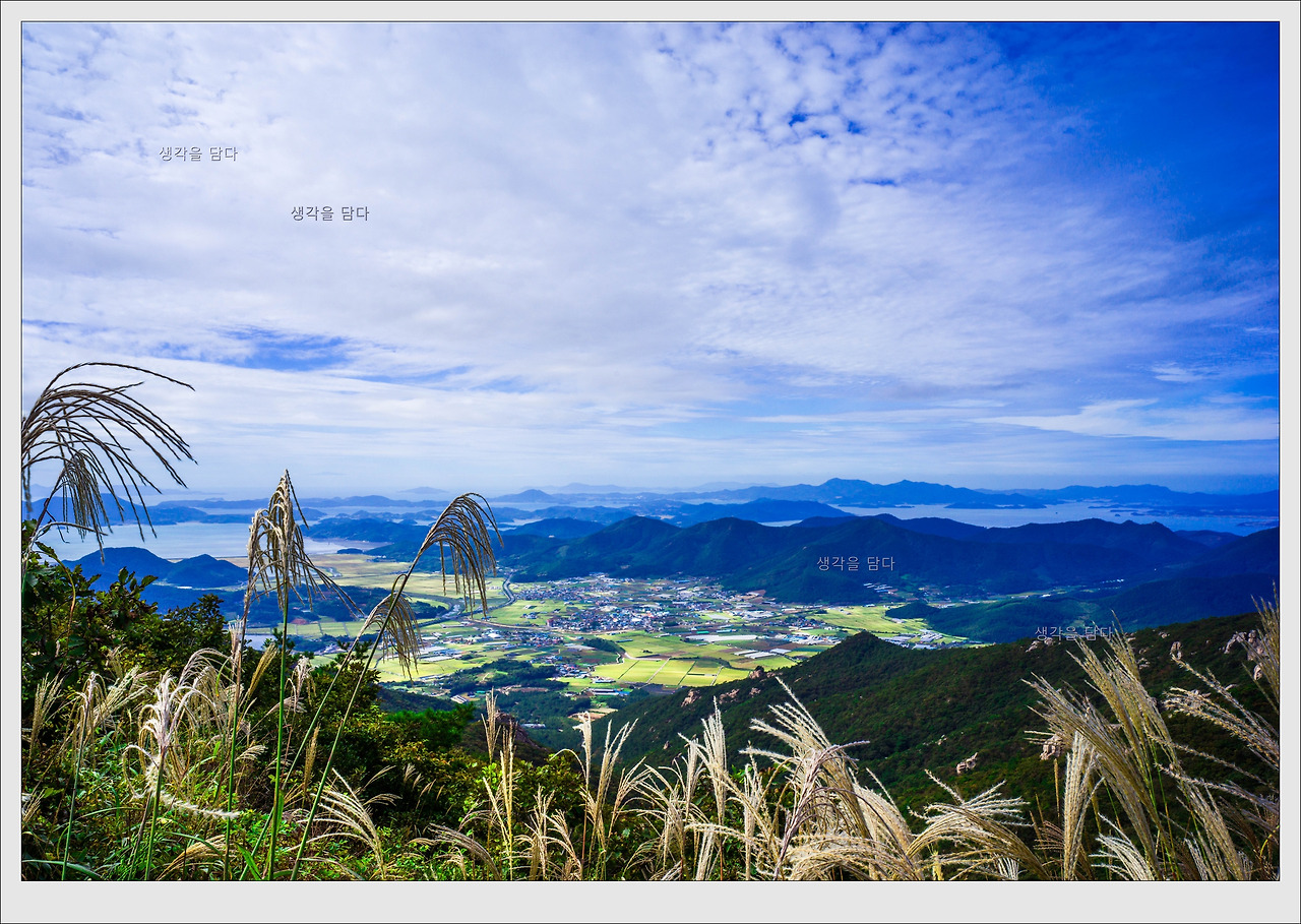 종봉 너머로 관산읍내와 가을 들판이 평화롭게 펼쳐져 있다.