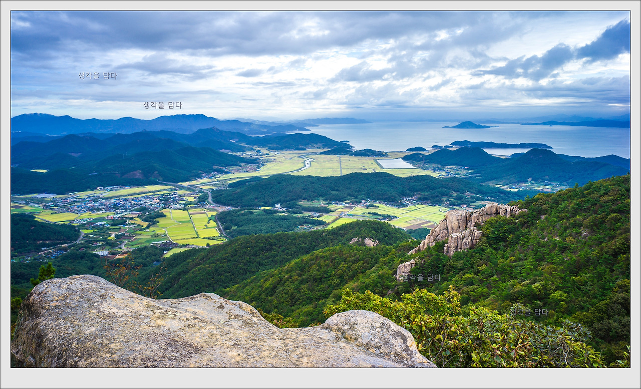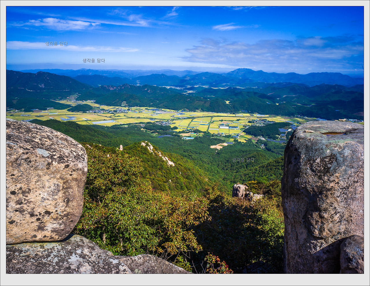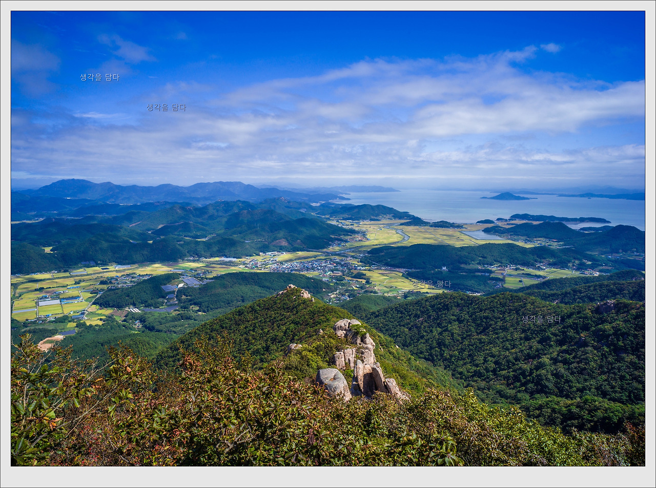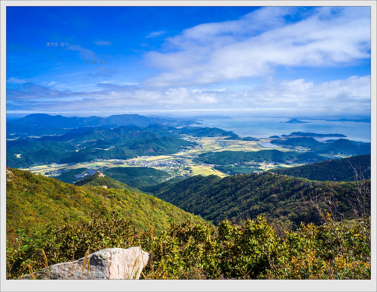 종봉 너머로 관산읍내와 가을 들판이 평화롭게 펼쳐져 있다.