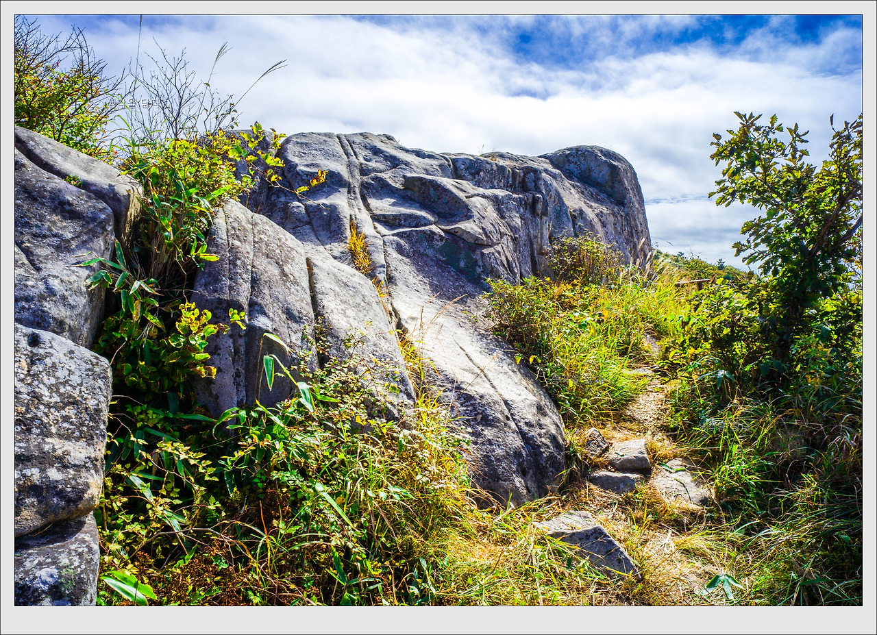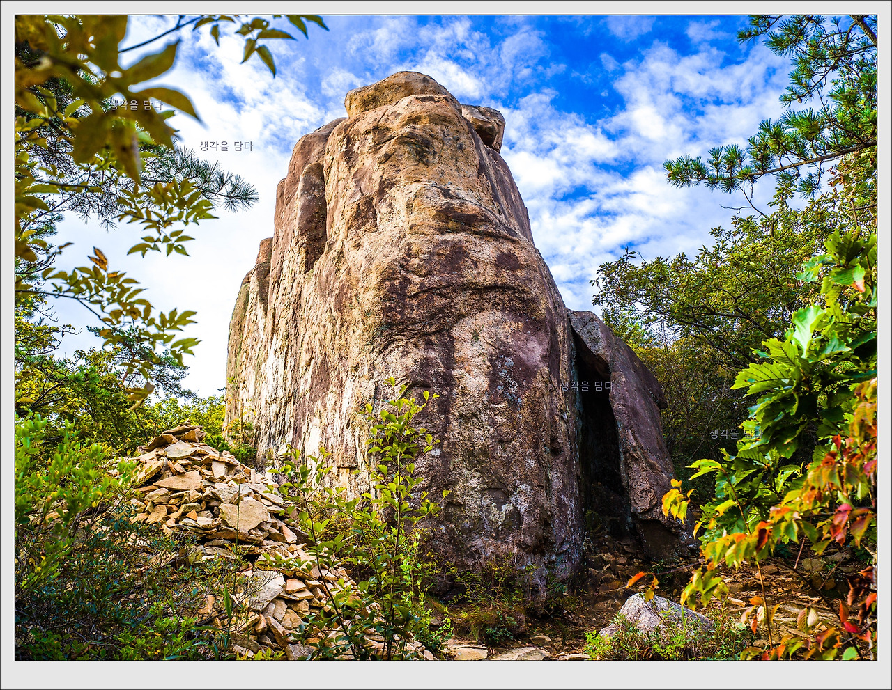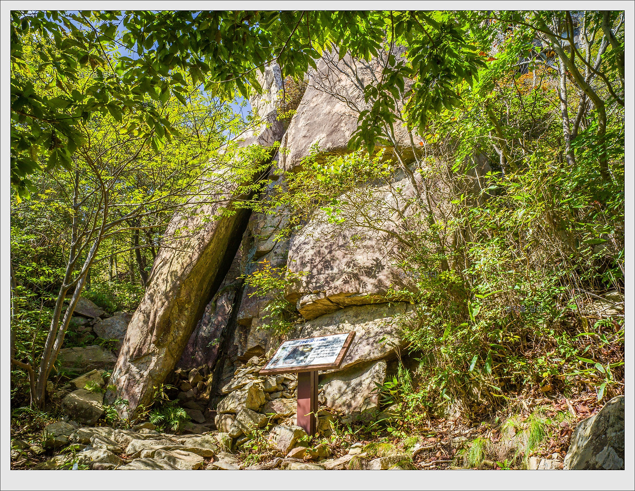 그렇게 조망을 즐기며 다시 20분쯤 오르자 거대한 바위가 앞을 가로막아 섰다.