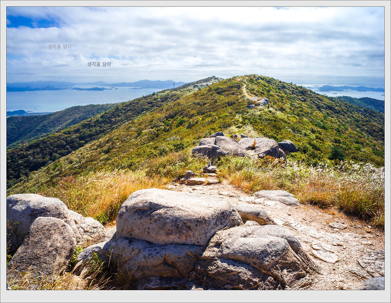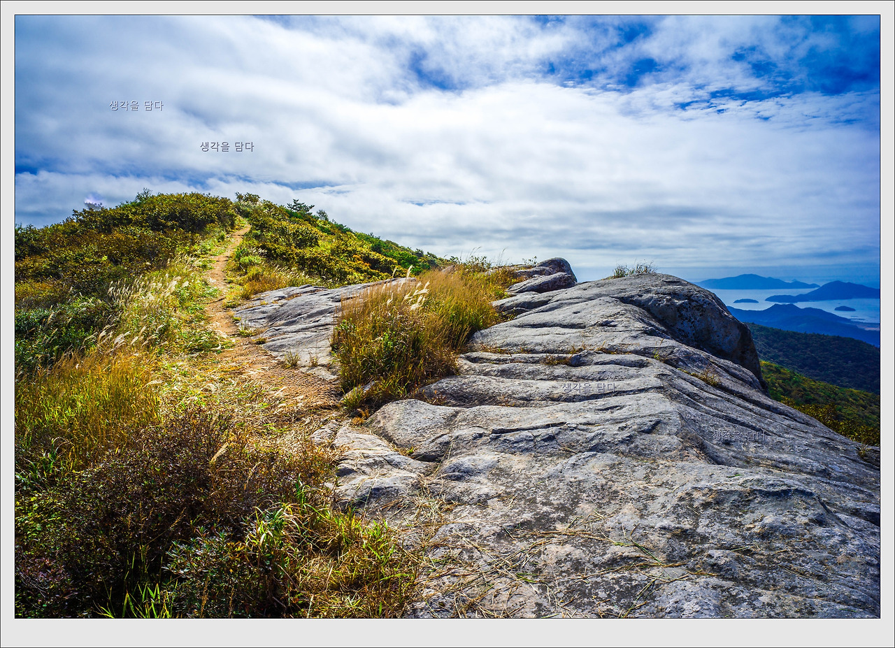 그와 동시에 키 큰 나무가 없는 능선길로 이어지면서 광활한 다도해 조망이 펼쳐지기 시작했다.