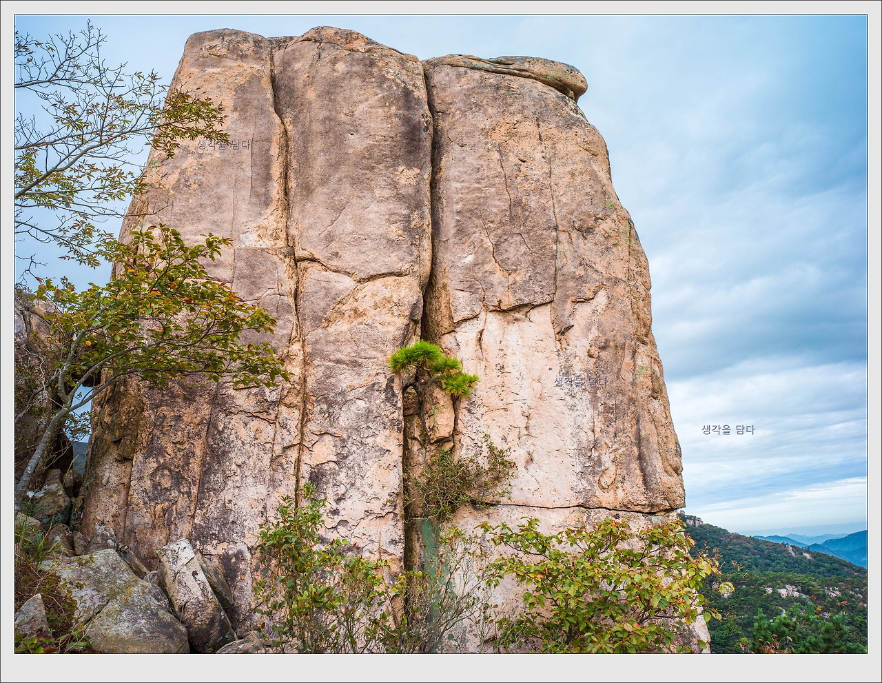 그 바위틈 중간에도 소나무 한 그루가 옆으로 자라고 있다.