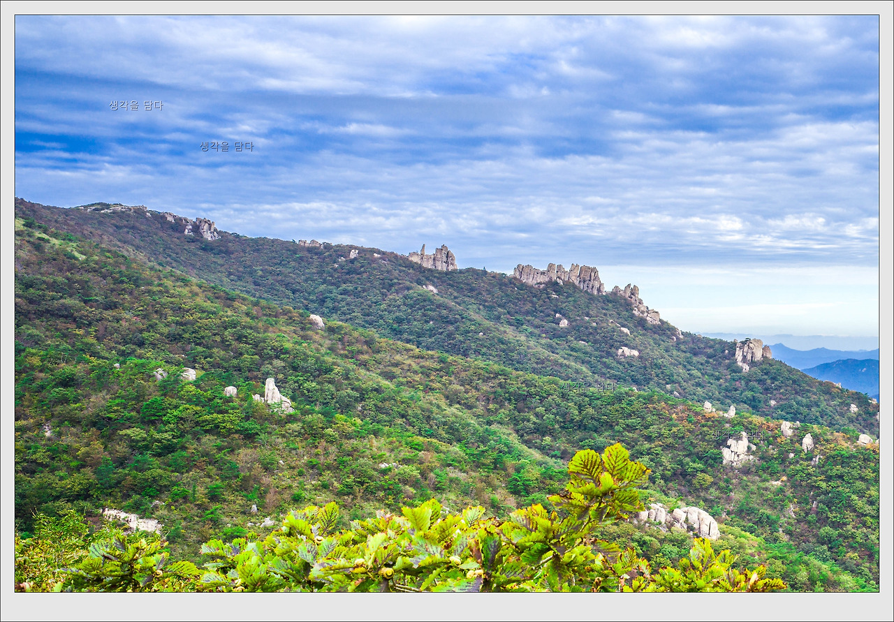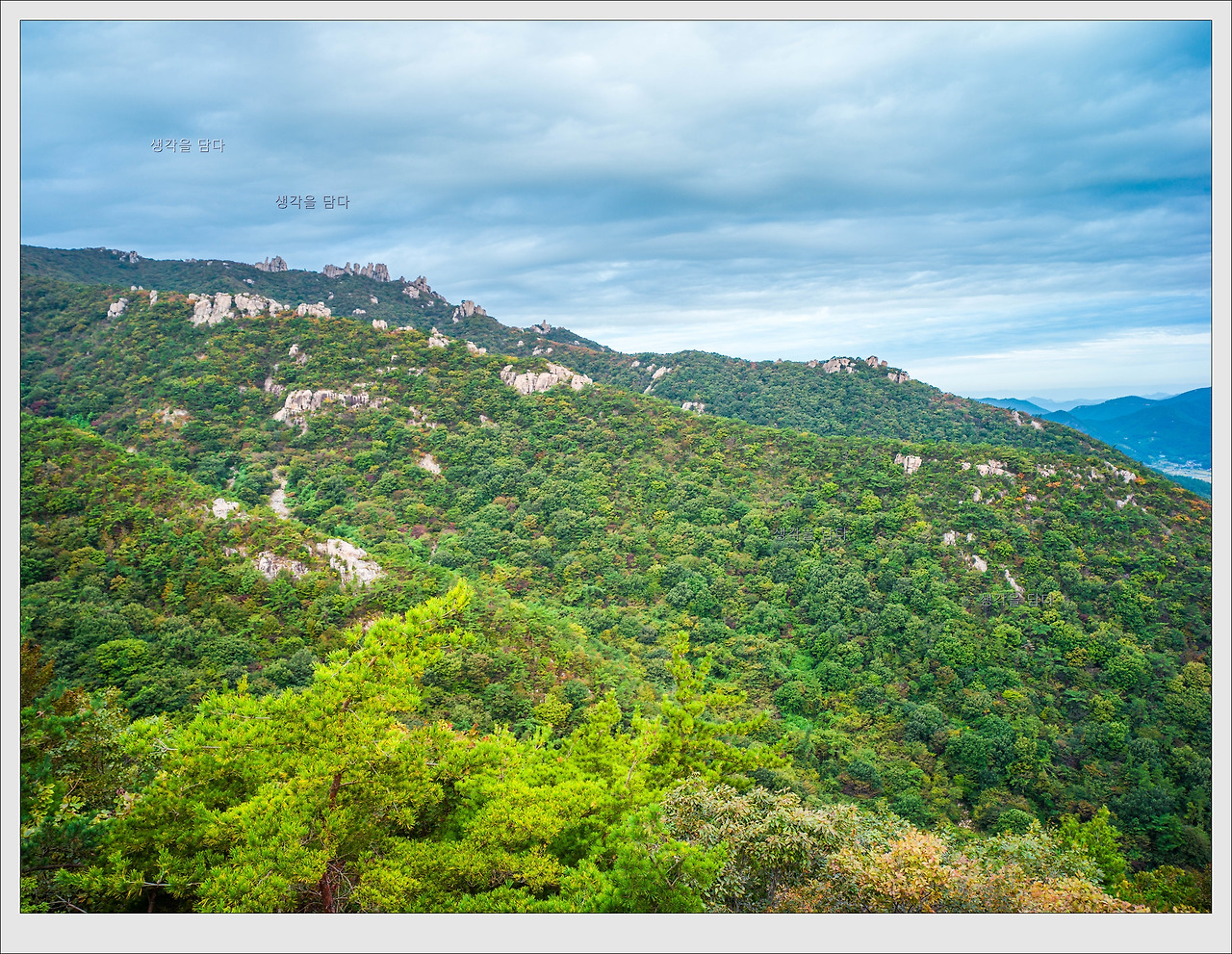 오른쪽으로 고개를 돌리자 저 멀리 우리가 내려갈 예정인 금강굴코스 능선이 보였다.