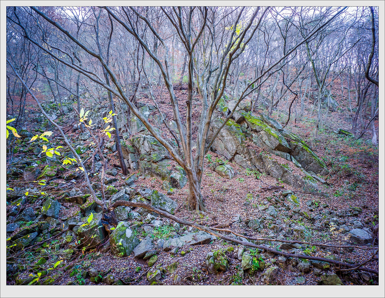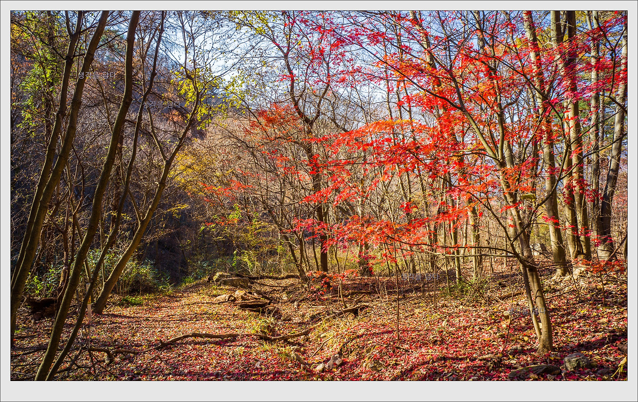 겨울 모드에 접어든 윗쪽과는 달리 산 아랫쪽은 아직 늦단풍이 군데군데 마지막 정렬을 불태우고 있다.
