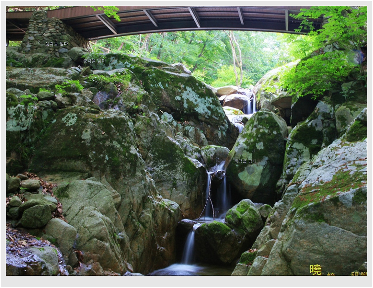 그 바위와 돌 사이를 굽이치고 떨어지고 튕겨나가는 물소리가 참 아름다운 소릿길이었다.