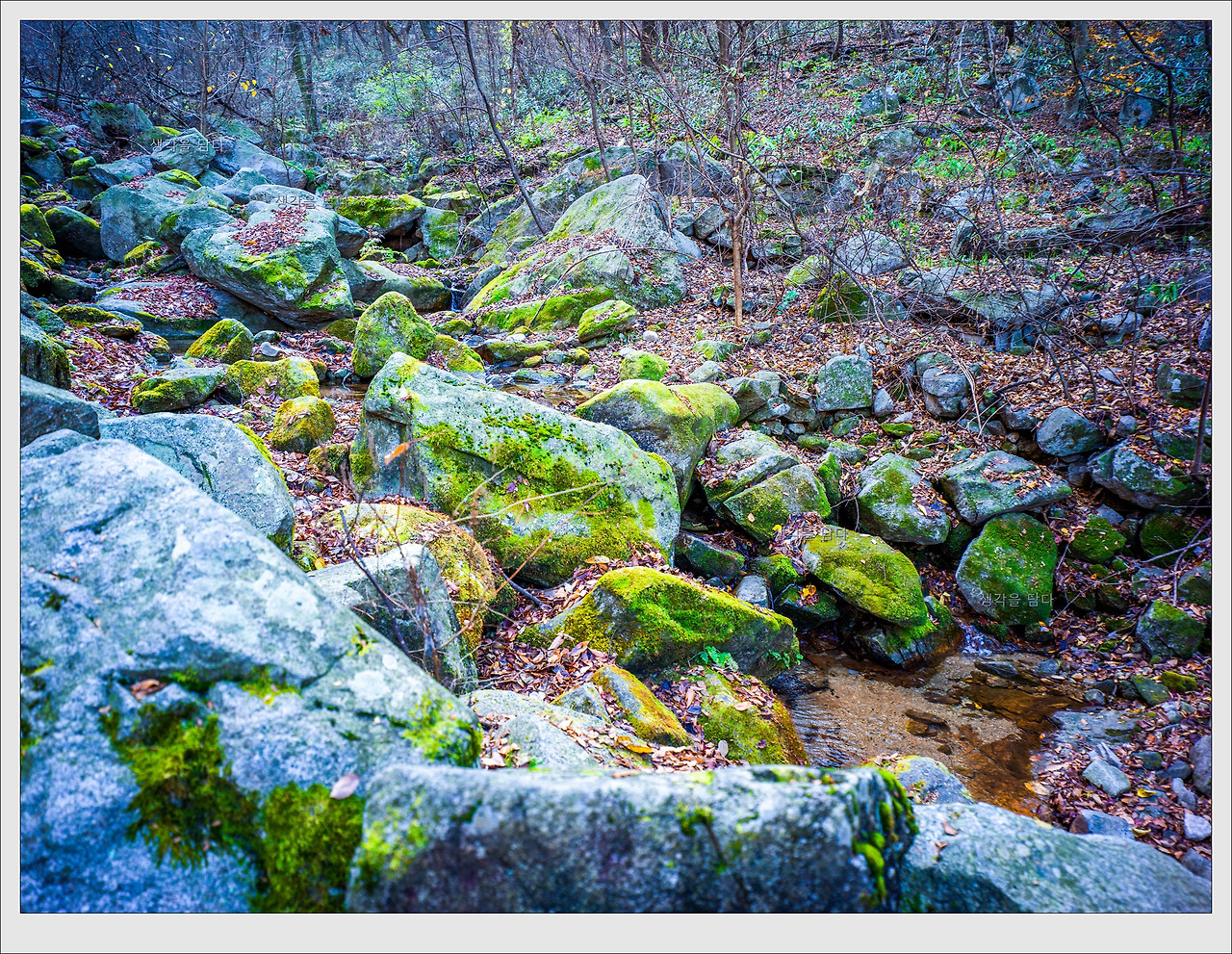 계곡의 대부분은 바위와 큰 돌들로 이루어져 있다.